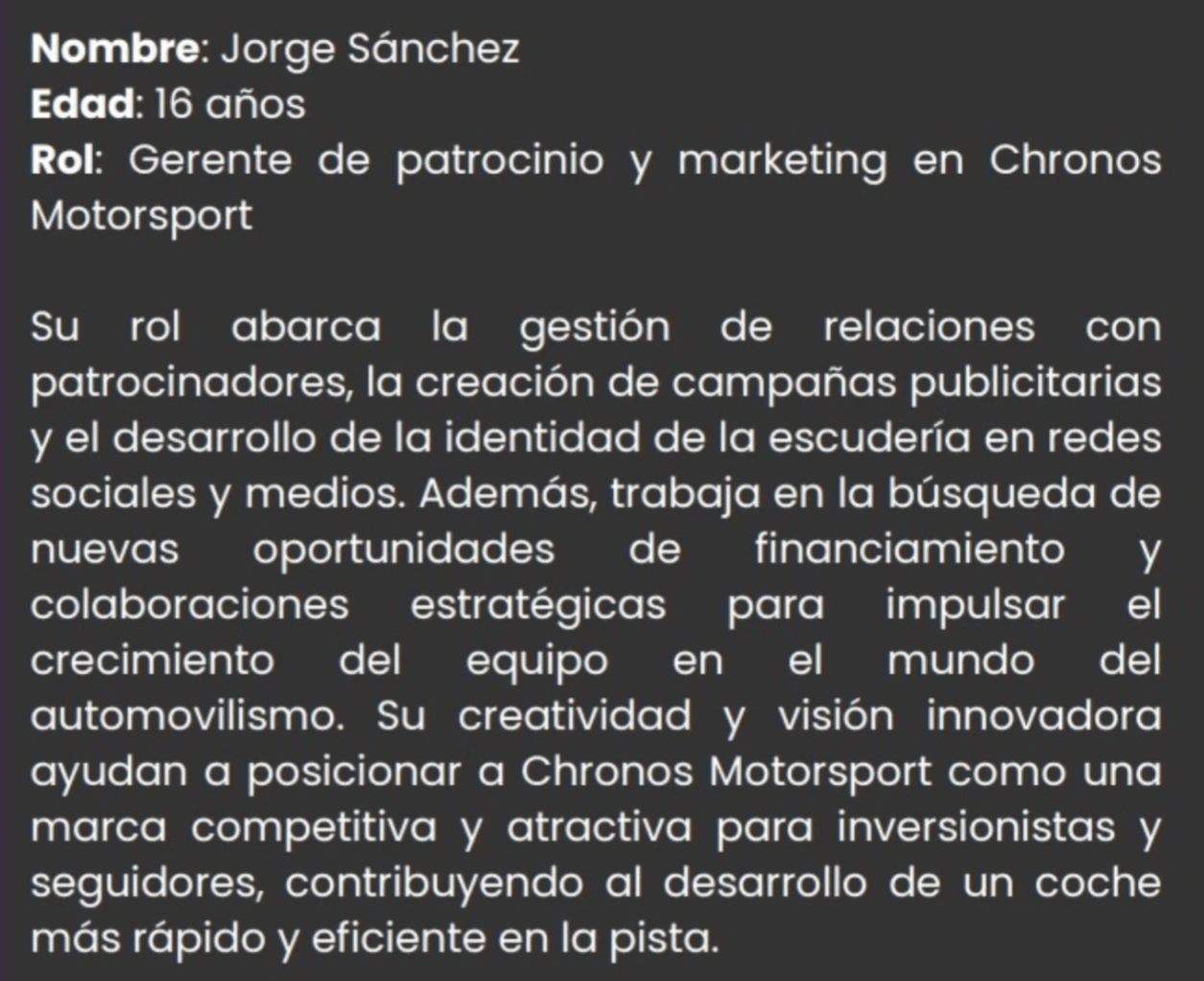 Compromiso: Nos dedicamos al máximo en cada aspecto del proyecto, desde el diseño del coche hasta la gestión de la escudería.